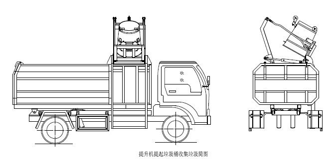 起升機構(gòu):箱體側(cè)面安裝起升機,采用鏈條式或拉桿式機構(gòu),由油缸給力提升,可將垃圾桶吊上,放下,上下升降,上下一次工作循環(huán)時間為50S。