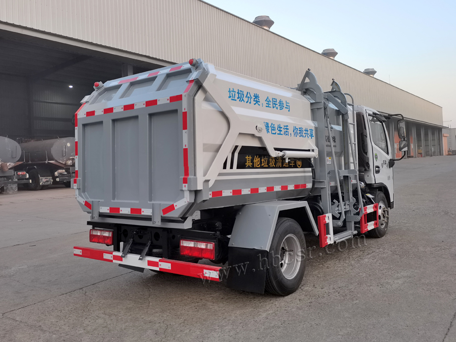 3、后蓋液壓打開,可與城市壓縮垃圾站對接使用,進行壓縮垃圾塊的清運工作;