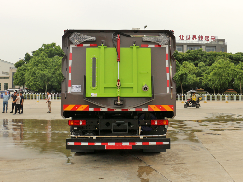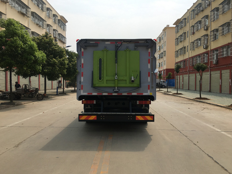 16)污水箱內(nèi)采用大平面斜坡結(jié)構(gòu),**大卸料角度可達(dá)50度,更易于傾倒垃圾。污水箱內(nèi)設(shè)置了防溢滿報(bào)**裝置和高壓噴淋清洗裝置,防溢滿報(bào)**裝置可防止污水作業(yè)時(shí)從吸管溢出,造成二次污染;高壓噴淋清洗裝置在傾倒垃圾后可對污水箱進(jìn)行自動清洗,大大減輕了操作人員的勞動強(qiáng)度。