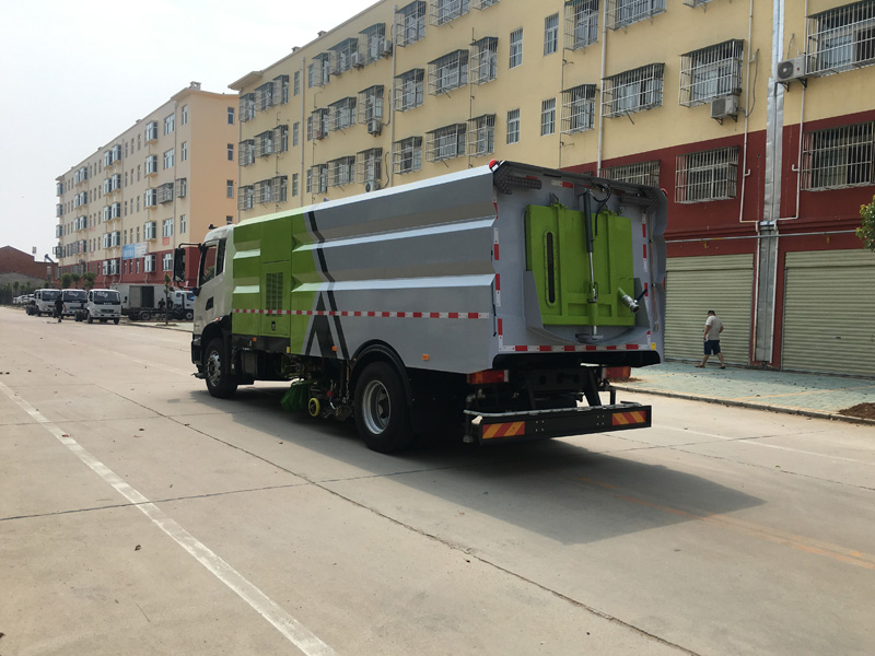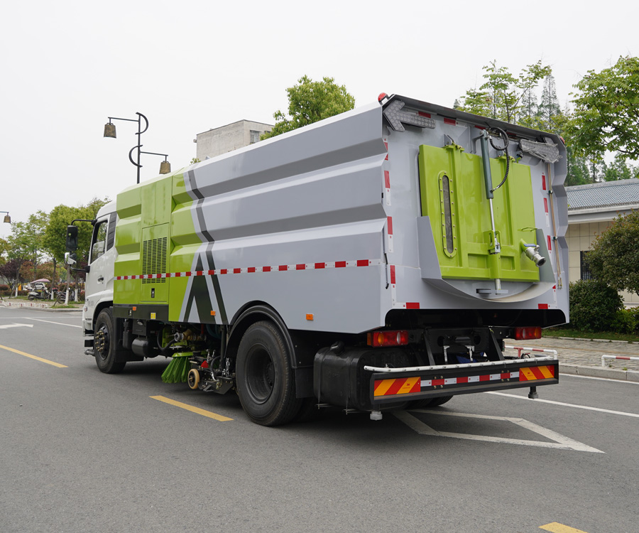 低壓沖洗:利用離心水泵的低壓力、大流量對路面進(jìn)行沖洗作業(yè),作灑水車用。