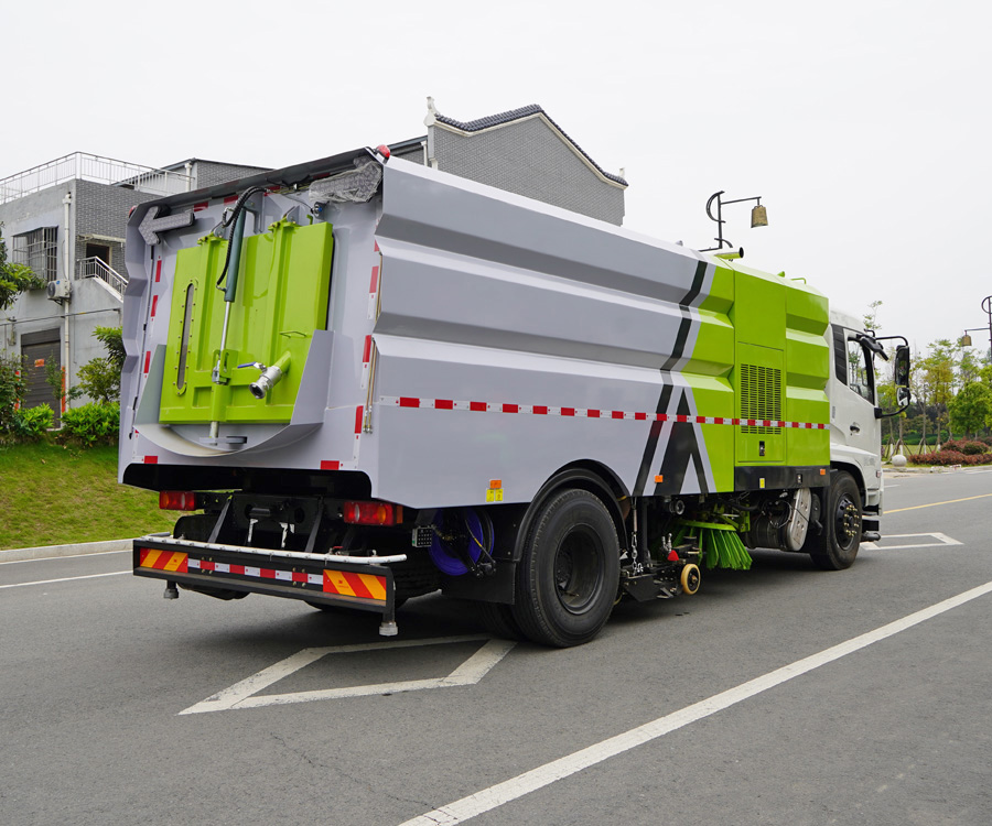 6)具備倒車保護(hù)裝置,在作業(yè)過程中如遇緊急倒車,智能化的**系統(tǒng)會自動停止作業(yè)并收回掃盤、吸盤和側(cè)噴桿;具有防止舉升垃圾箱翻車保護(hù);具有檢修安全保護(hù)。