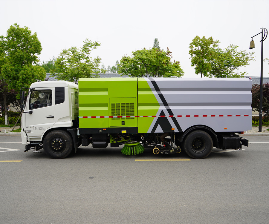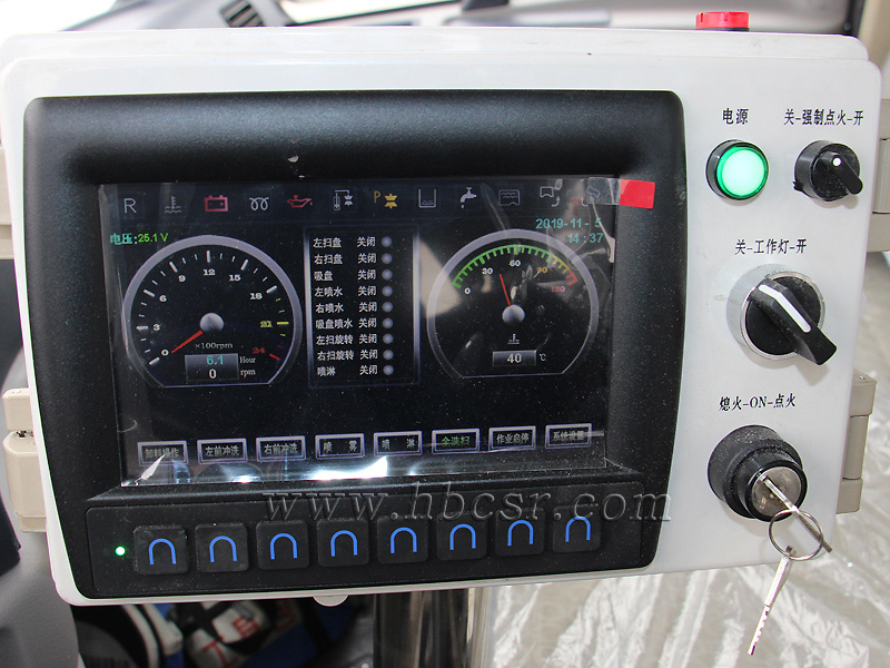 3)采用智能化一鍵控 制技術(shù),全部作業(yè)均在駕駛室內(nèi)完成,作業(yè)時(shí),只需選定作業(yè)模式后,各作業(yè)機(jī)構(gòu)的啟動與關(guān)停由程序自動**。具有全洗掃作業(yè)、左洗掃作業(yè)、右洗掃作業(yè)、全掃路作業(yè)、左掃路作業(yè)、右掃路作業(yè)、全吸作業(yè)、左洗作業(yè)和右洗作業(yè)等9種作業(yè)模式可選。