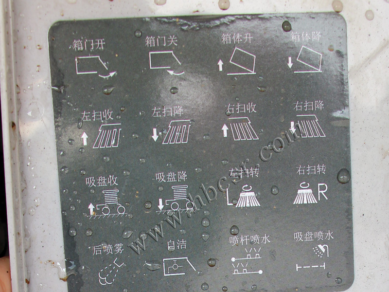 ▲東風多利卡洗掃車后置操作面板,可操控掃盤、吸盤、噴霧、箱體自潔、噴桿噴水、吸盤噴水等多種運作