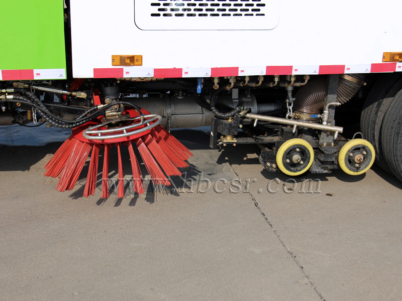2)采用“中置兩立掃+中置寬吸嘴(內(nèi)置高壓水噴桿)+左右高壓側(cè)噴桿”的結(jié)構(gòu)。