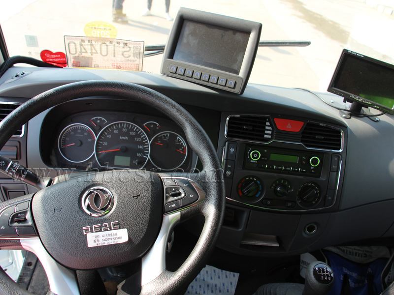 ▲東風多利卡洗掃車駕駛室內(nèi)飾及電腦操控面板、作業(yè)監(jiān)控視頻