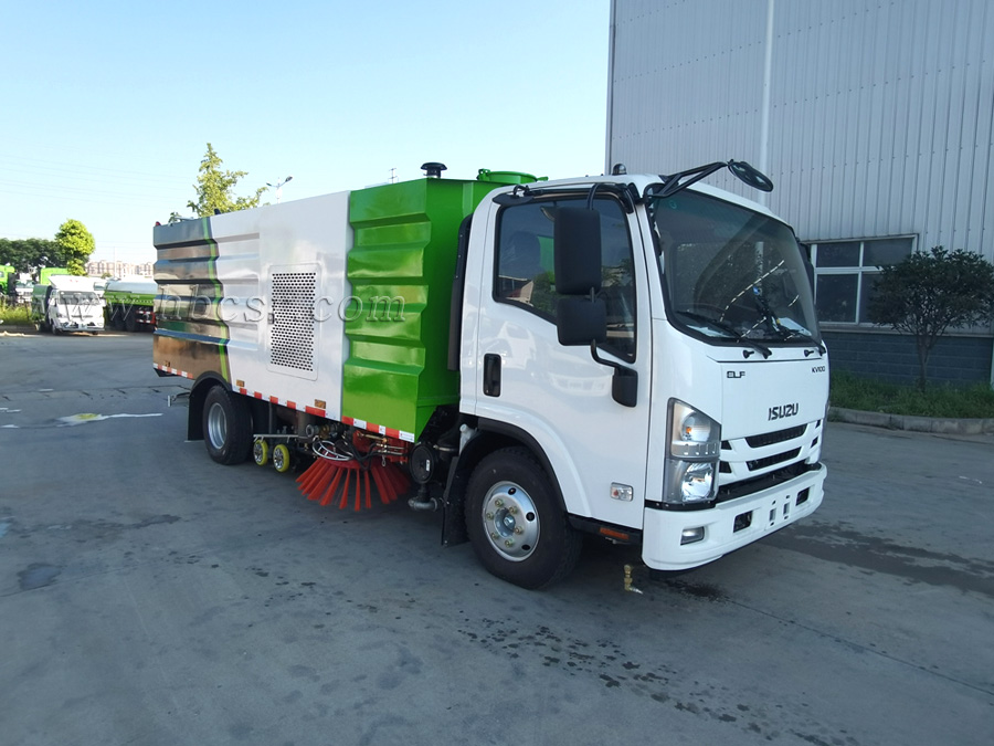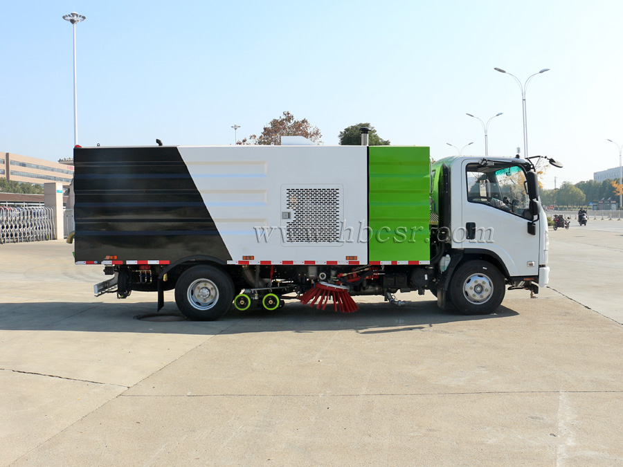 ★ 五十鈴洗掃車采用2掃盤與吸盤進行掃吸結合,掃吸能力強;兩側掃把可同時工作,也可單側作業(yè)。清掃裝置機構簡潔可靠,掃盤有防碰撞自動避讓功能,可根據地面泥沙嚴重程度及行車速度選擇掃盤的清掃方式;吸嘴為后置浮動式,可自動調節(jié)適應地面凹凸不平的狀況;清掃時可噴霧狀水,在節(jié)水的同時全面杜絕二次環(huán)境污染。