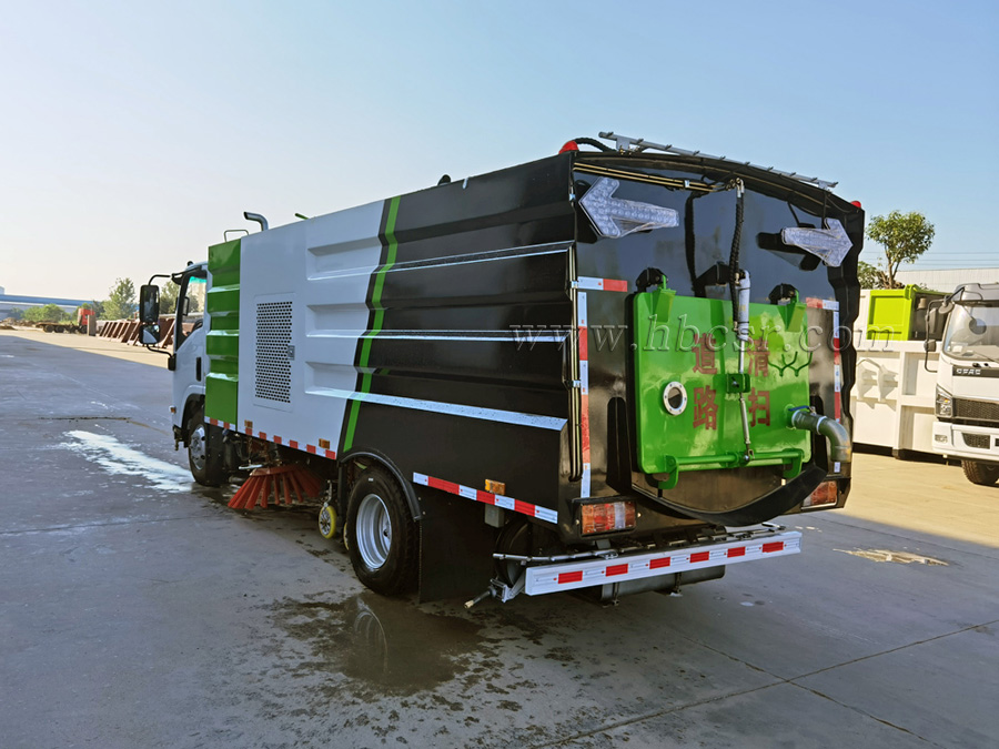 低壓沖洗:利用離心水泵的低壓力、大流量對路面進行沖洗作業(yè),作灑水車用。
