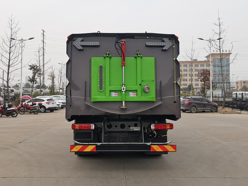 16)污水箱內(nèi)采用大平面斜坡結(jié)構(gòu),**大卸料角度可達50度,更易于傾倒垃圾。污水箱內(nèi)設(shè)置了防溢滿報**裝置和高壓噴淋清洗裝置,防溢滿報**裝置可防止污水作業(yè)時從吸管溢出,造成二次污染;高壓噴淋清洗裝置在傾倒垃圾后可對污水箱進行自動清洗,大大減輕了操作人員的勞動強度。